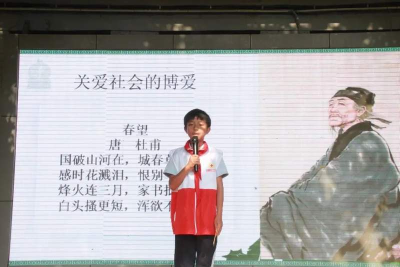 黑芝麻校区五7班学生通过视频、访谈、诗歌朗诵的形式做了精彩展示。主持人访谈了4位红十字会员,其中红十字会员余思远同学说到:“红十字的精神是人道、博爱、奉献。我作为一名小学生做不出惊天动地的大事,但我能做到力所能及的小事。学校每年都举办博爱在京城,小芝麻在行动的捐款活动,我会用自己的压岁钱去献出爱心。5月份我将要参加东城区举办的小学生健康知识竞赛,我现在利用课余时间学习,复习,争取为学校争光。我希望通过我的行动为大家树立榜样,也希望同学们用实际行动去践行红十字精神,学会关心关爱别人,做一个充满爱心、乐于奉献的人。”
